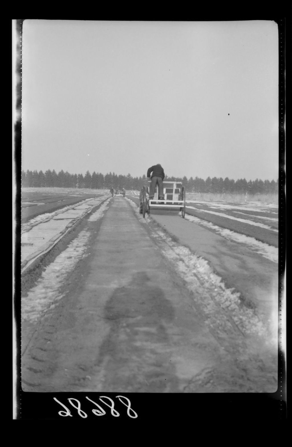 Sableuses pour planches de semis. Cette sableuse confectionnée sur place sert à épandre uniformément le sable en recouvrant les semences. Pépinière provinciale de Berthierville