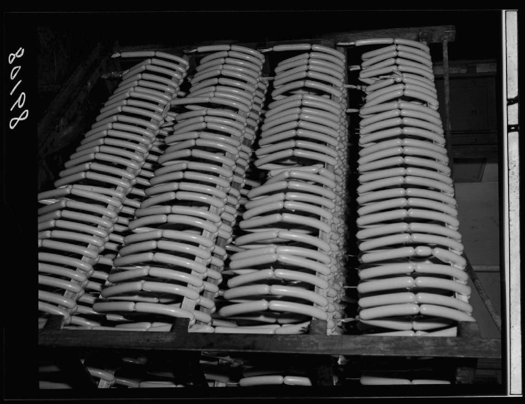 Saucisse de Frankfor prête pour la chambre à fumer. Canadian Swift Co. Québec