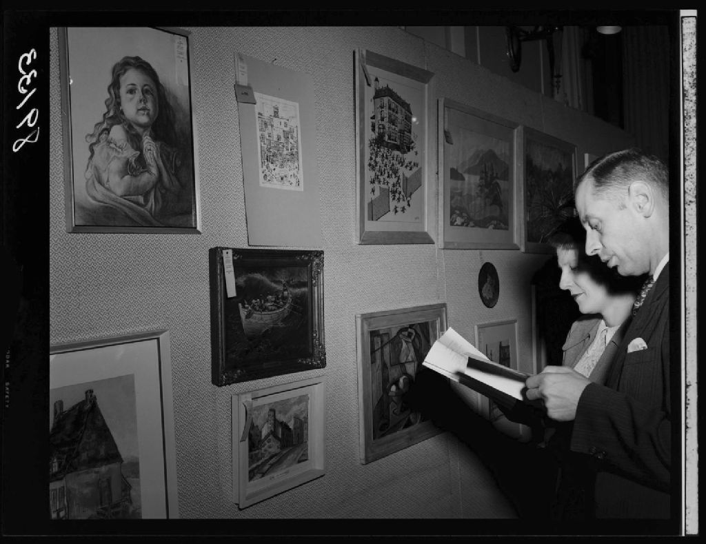 Exposition de peinture, 1951, Archives nationales à Québec, Fonds Ministère de la Culture et des Communications, (03Q,E6,S7,SS1,D2,P89133), Neuville Bazin.