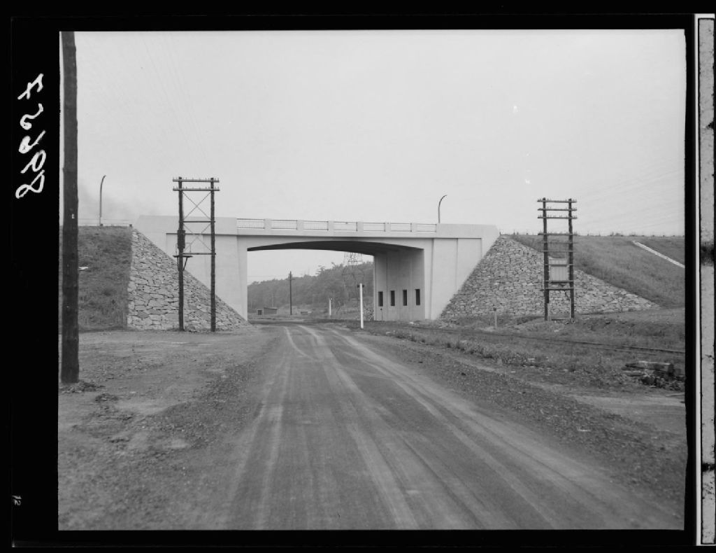 Rive nord du Saint-Laurent près du pont de Québec. Viaduc permettant au boulevard Sir Wilfrid Laurier de brancher la voie ferrée et une route secondaire, 1951, Archives nationales à Québec, Fonds Ministère de la Culture et des Communications, (03Q,E6,S7,SS1,D2,P89657), Neuville Bazin.
