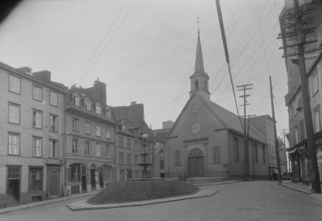 Québec, Québec - Église Notre-Dame-des-Victoires, [vers 1950-vers 1960], Archives nationales à Québec, Fonds ministère de la Culture et des Communications, (03Q,E6,S8,SS1,SSS1593,D13153), Edgar Gariépy, Jean-Paul Morisset.