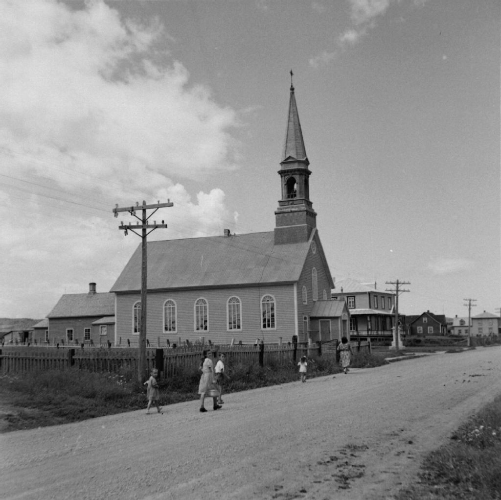 Cap-des-Rosiers, Gaspé Est - Église - Construite en 1881 par Samuel Morin, 1948, Archives nationales à Québec, Fonds ministère de la Culture et des Communications, (03Q,E6,S8,SS1,SSS443,D1785), Omer Parent.