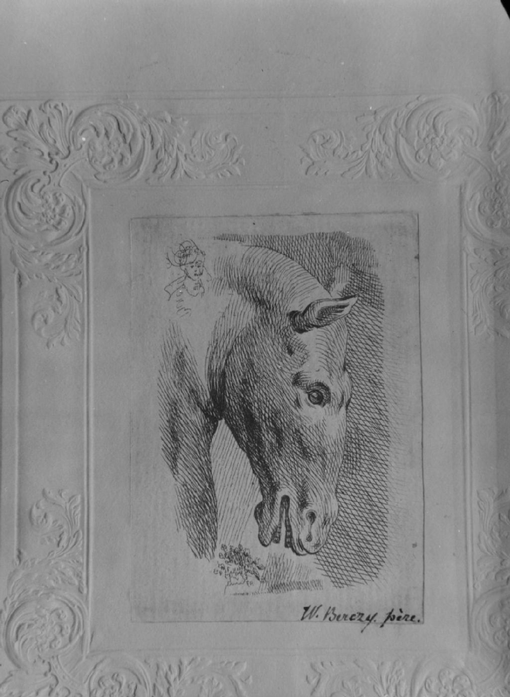 Montréal - Bibliothèque municipale, Album Viger - Tête de cheval à profil à droite, gueule ouverte, [1944], Archives nationales à Québec, Fonds ministère de la Culture et des Communications, (03Q,E6,S8,SS1,SSS548,D2196), Gérard Morisset.