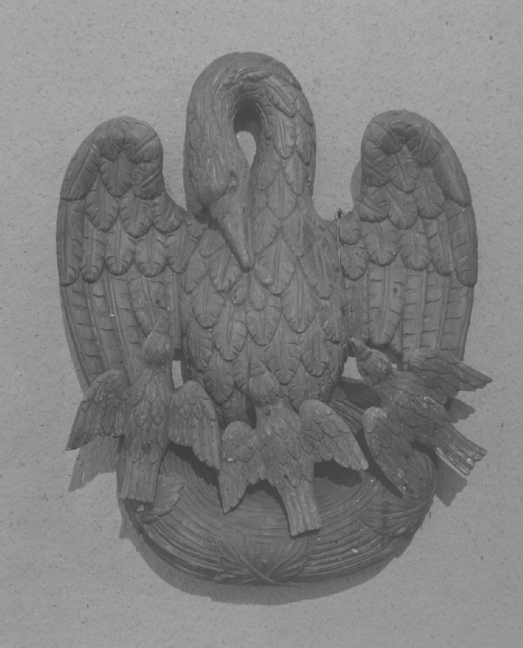 Montréal, île de Montréal - École du Meuble (collection Paul Gouin) - Sculpture de bois représentant un pélican et ses petits