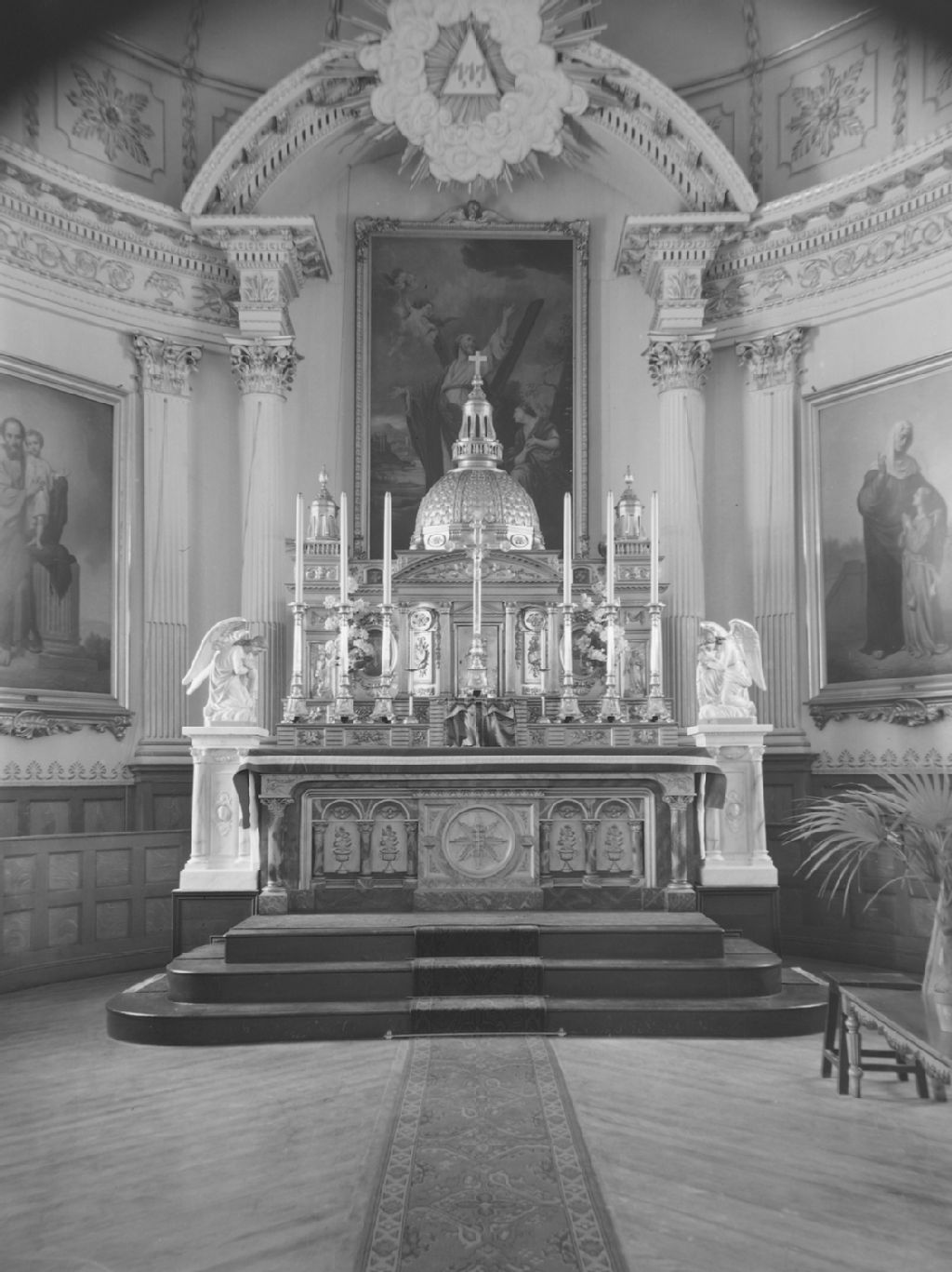 Saint-André, Kamouraska - Église - Sanctuaire de l'église, 1945, Archives nationales à Québec, Fonds ministère de la Culture et des Communications, (03Q,E6,S8,SS1,SSS822,D5158), Gérard Morisset.