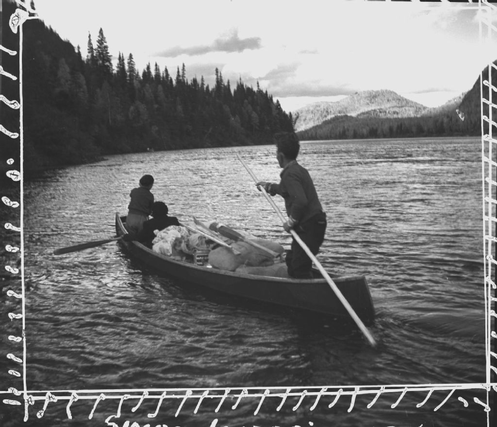 Simon Jourdain monte à la perche la rivière Manicouagan, à 60 milles au nord de Baie Comeau., 1942, Archives nationales à Québec, Fonds Ministère de la Culture et des Communications, (03Q,E6,S9,P408A), Paul Provencher.