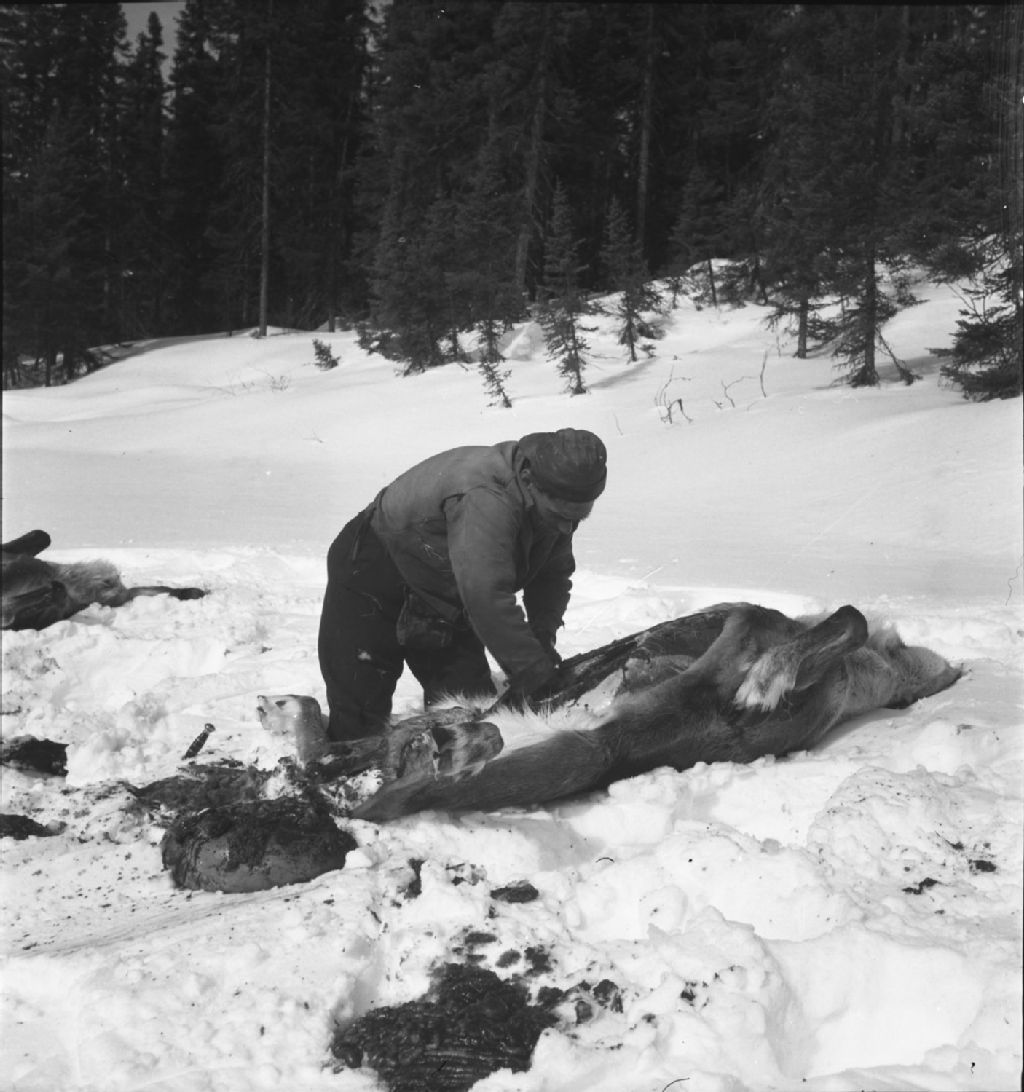 Dépeçage d'une femelle caribou., 1934, Archives nationales à Québec, Fonds Ministère de la Culture et des Communications, (03Q,E6,S9,P630C), Paul Provencher.
