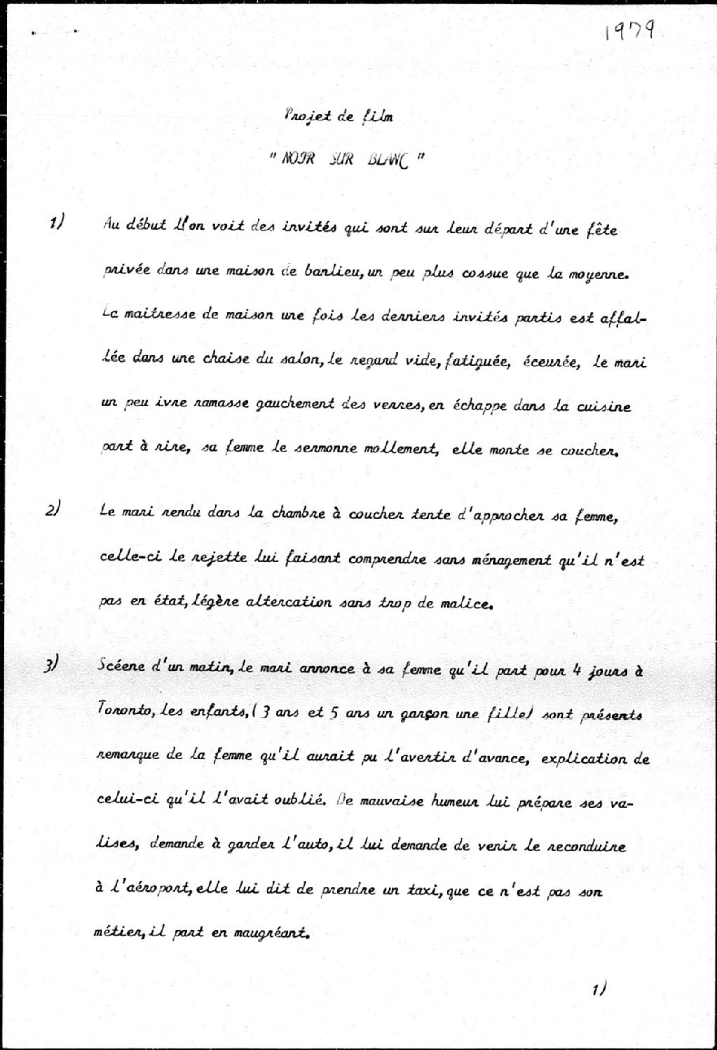 Document intitulé «Journal d'autrefois», 1962 - 25 février 1965; manuscrits de deux pièces de théâtre intitulés «Être ou ne pas naître», 1962-1980, et «To be or not to Be», 1980; projet de film intitulé «Noir sur blanc», 1979