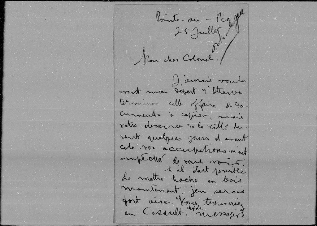 - Lettre de Alfred-Duclos Decelles à un colonel, Pointe-au-Pic, s.d.; lettre de Alfred-Duclos Decelles à monsieur Roy, Ottawa, 1898