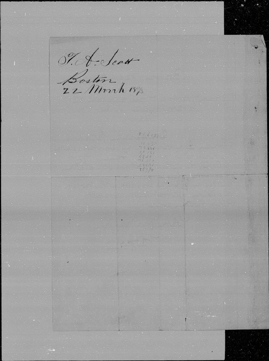 Lettre de T.A. Scott à Thomas Thibodeau, Boston, 22 mars 1873