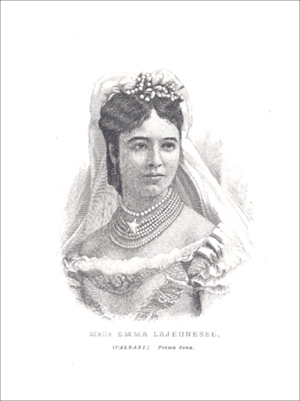 Melle Emma Lajeunesse, (L'Albani), Prima dona