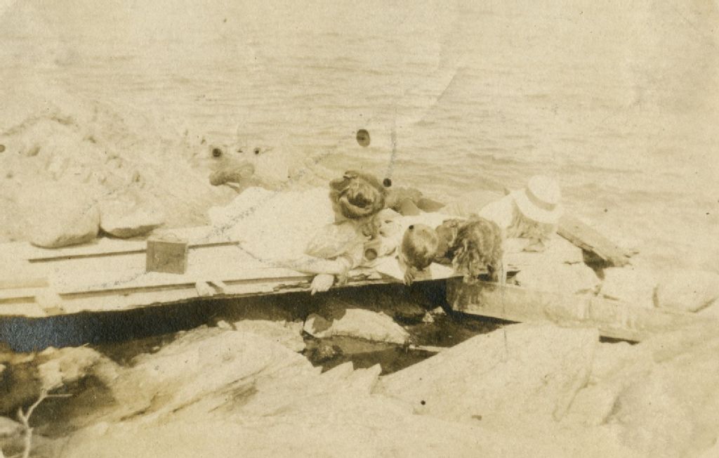Enfants à la pêche sur un petit quai, [Vers 1910], Archives nationales à Montréal, Fonds Famille Landry, (06M,P155,S1,SS1,D394), Photographe non identifié.