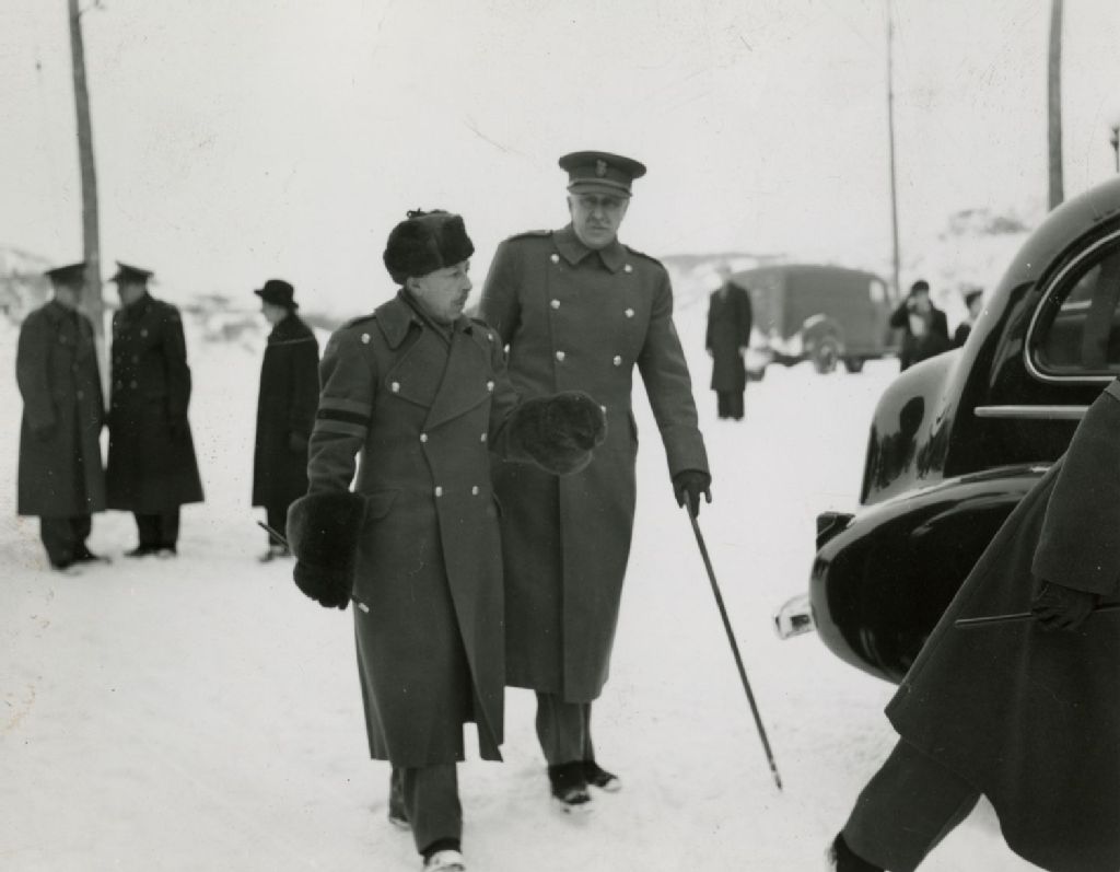 - Ce dossier montre le brigadier Georges-Philias Vanier, commandant du district militaire no 5, passant en revue la garde d'honneur du Centre d'instruction militaire de Chicoutimi (P1 avec la canne). On y voit le sergent Pineault, commandant de la garde et le lieutenant-colonel Jules Landry, commandant du Centre d'instruction militaire de Chicoutimi (P2 à P4 : à gauche; P5 : arrière; P6 : arrière à droite), lors de la tournée d'inspection de Vanier dans la région du Saguenay, du 29 janvier au 2 février 1942