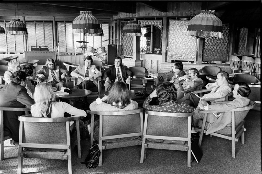 Conférence sur l'État et le citoyen à Lac Delage, La Roche à Veillon, érablière près de La Pocatière, port de Cacouna et vue de Rimouski, 1974-10-10, Archives nationales à Québec, Fonds Ministère des Communications, (03Q,E10,S44,SS1,D74-657), Jules Rochon.