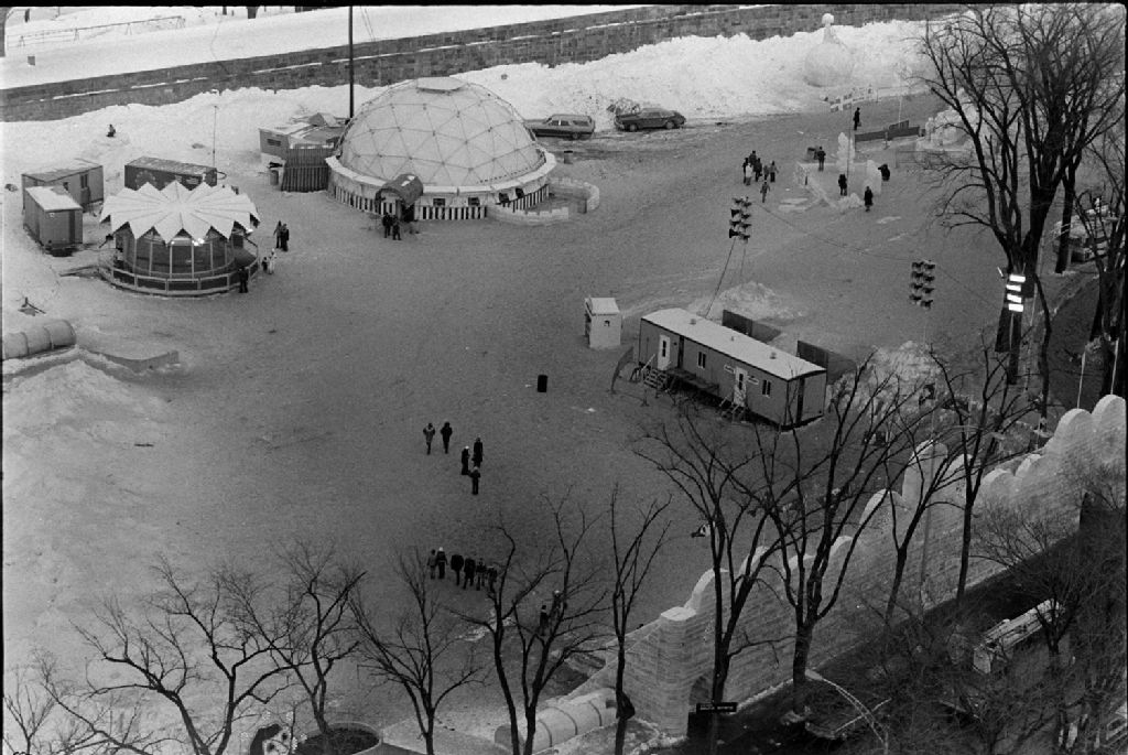 Place Carnaval, visite de Bonhomme Carnaval au Comité du système métrique et son président monsieur Auger et démolition de maisons rue Saint-Amable