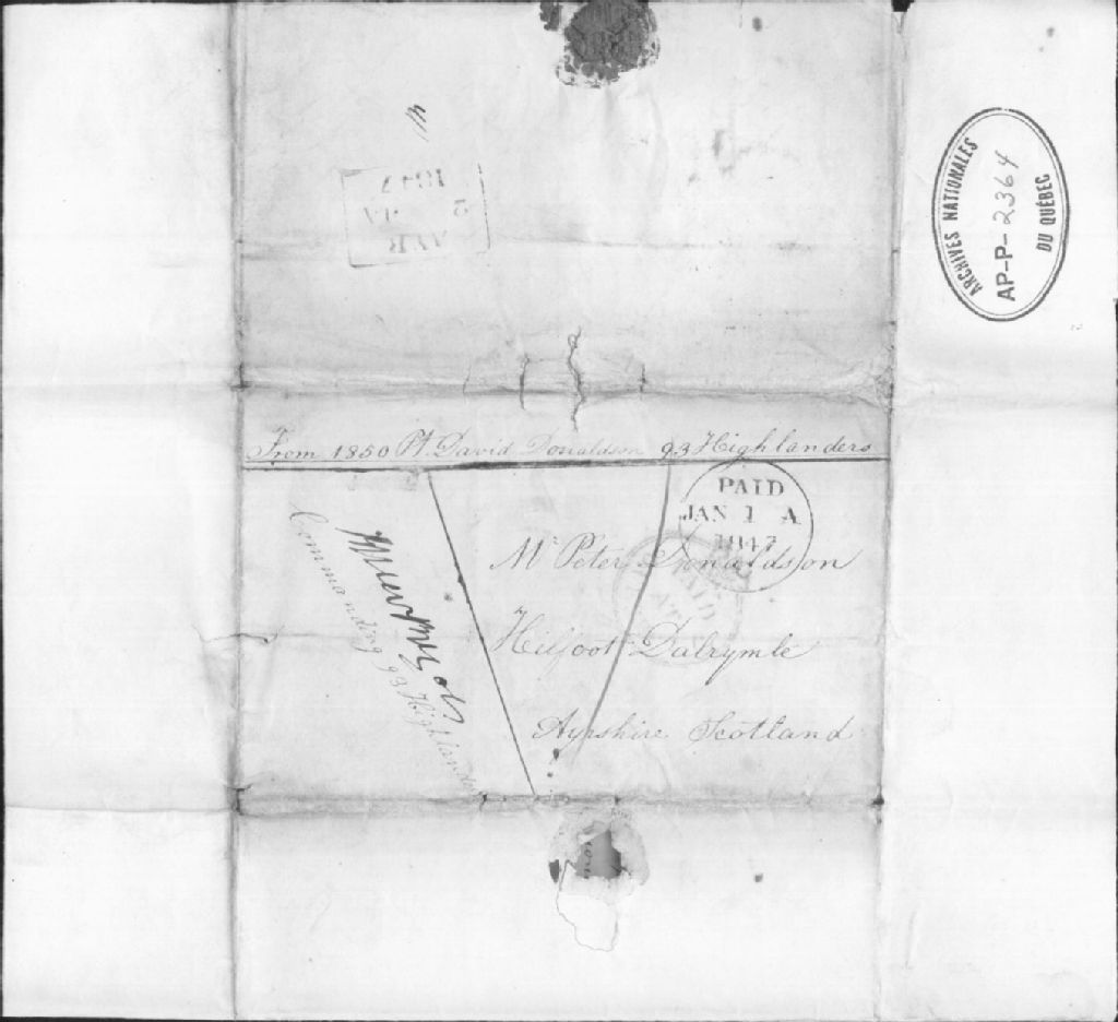 - Ce dossier est composé de six lettres de David Donaldson, en service militaire au Canada, adressées à ses père et mère, et à sa soeur Margaret, en Écosse