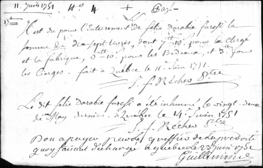 Facture de l'enterrement de Félix Darabie