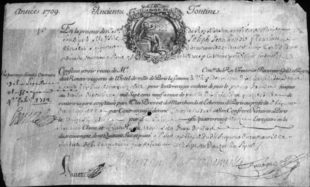 Reçu pour rentes viagères de J.-J.-Bte-Fleurian D'Armenonville