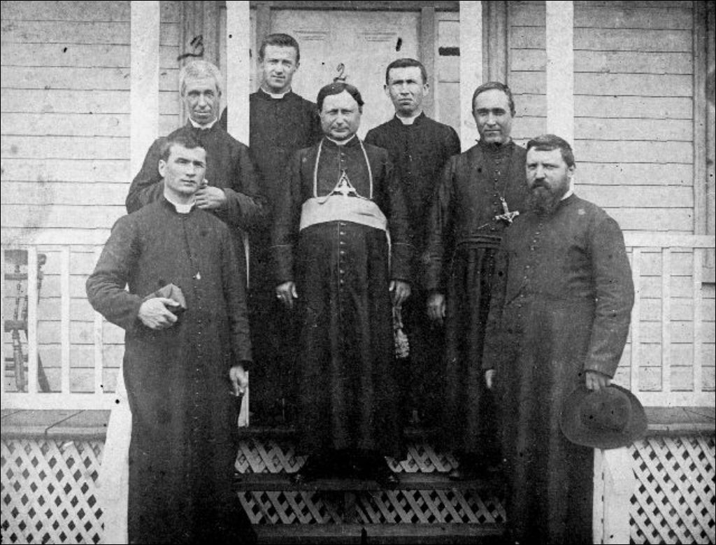 Mgr Duhamel? entouré de prêtres dont le curé de Chénéville, Adrien Guillaume