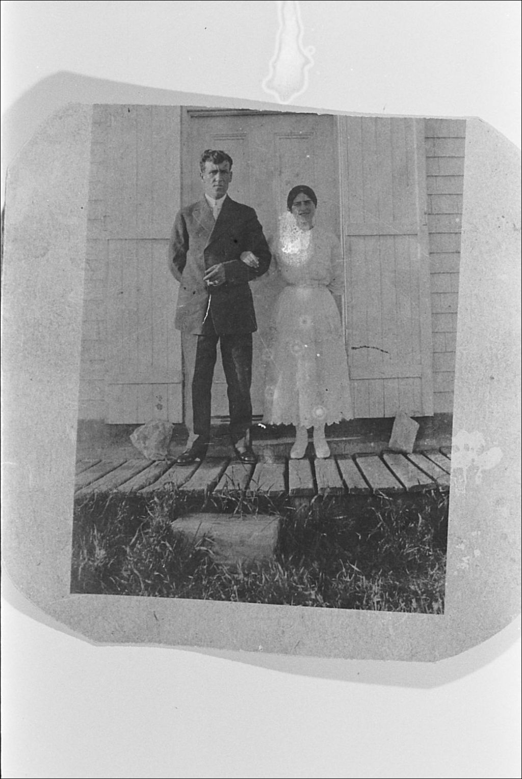 Mariage de Grégoire Cyr et Marie-Ange Boudreau, Négatif reproduit en 1983(original créé en 1917), Archives nationales à Sept-Îles, Fonds Société historique de Havre-Saint-Pierre inc, (09N,P19,S1,SS1,P190), Société historique de Havre Saint-Pierre.