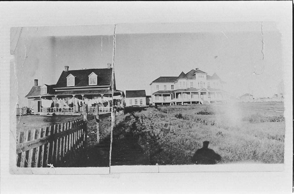 Évêché et maison du gérant de la Labrador Fisheries, Négatif reproduit en 1983 (original créé vers 1935), Archives nationales à Sept-Îles, Fonds Société historique de Havre-Saint-Pierre inc, (09N,P19,S1,SS1,P468), Société historique de Havre Saint-Pierre.