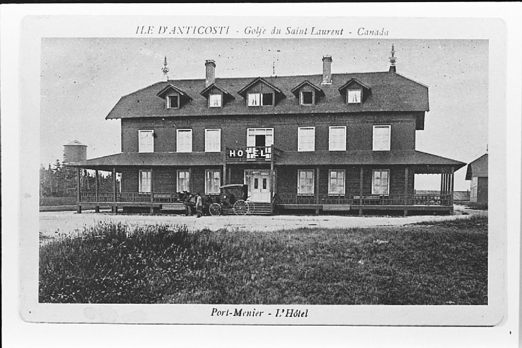 Hôtel de Port-Menier, Anticosti, Négatif reproduit en 1983 (original créé vers 1928), Archives nationales à Sept-Îles, Fonds Société historique de Havre-Saint-Pierre inc, (09N,P19,S1,SS1,P677), Société historique de Havre Saint-Pierre.