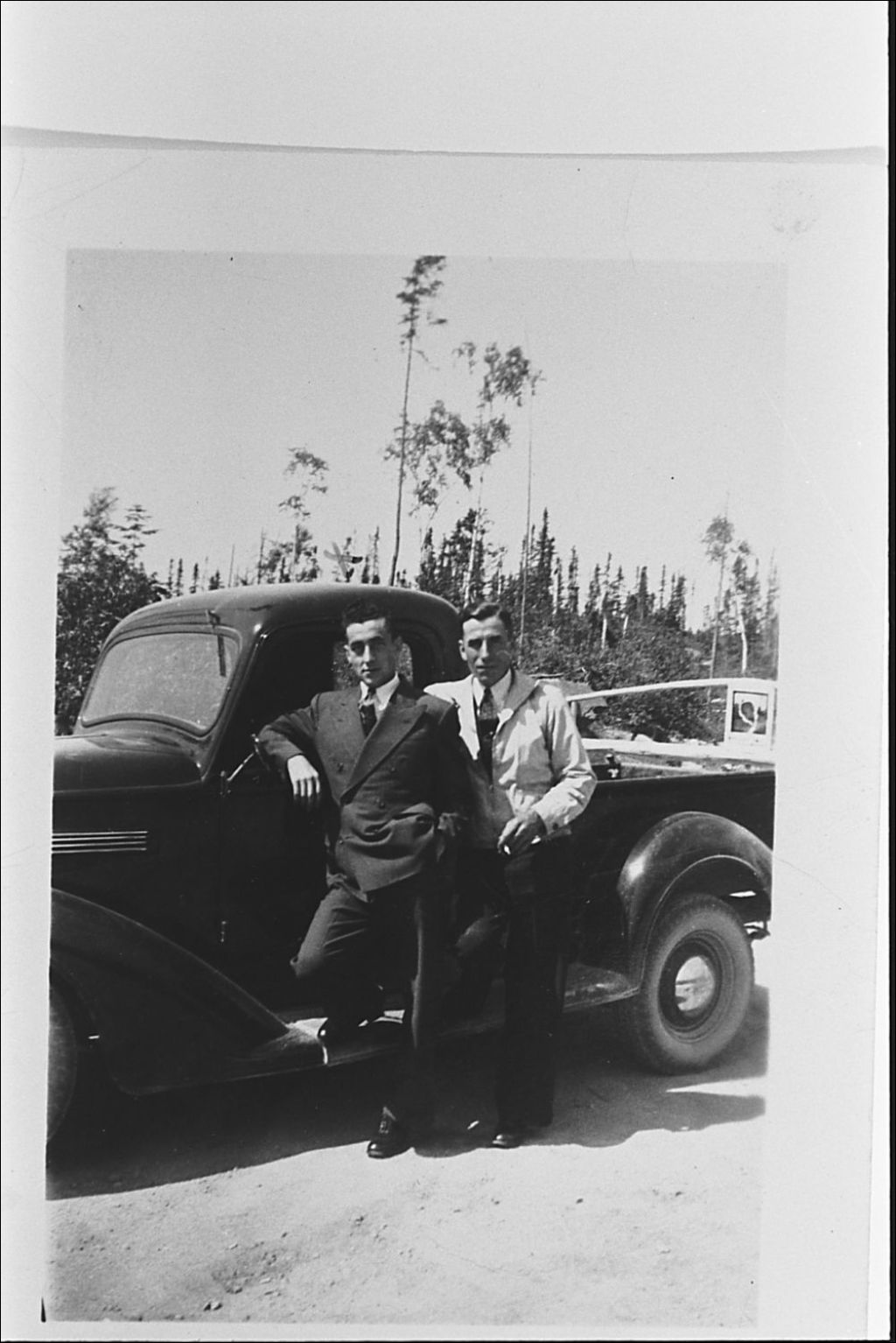 Un des premiers camions à Natashquan, Négatif reproduit en 1983 (original créé vers 1940), Archives nationales à Sept-Îles, Fonds Société historique de Havre-Saint-Pierre inc, (09N,P19,S1,SS1,P718), Société historique de Havre Saint-Pierre.