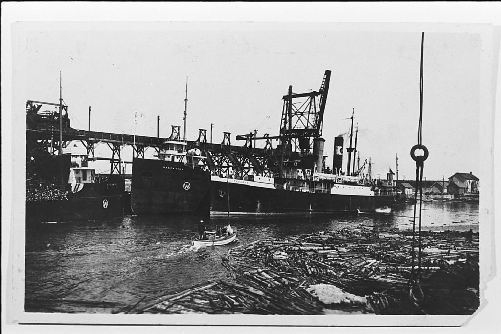 Quai de Port-Menier, Négatif reproduit en 1983 (original créé vers 1928), Archives nationales à Sept-Îles, Fonds Société historique de Havre-Saint-Pierre inc, (09N,P19,S1,SS1,P777), Société historique de Havre Saint-Pierre.