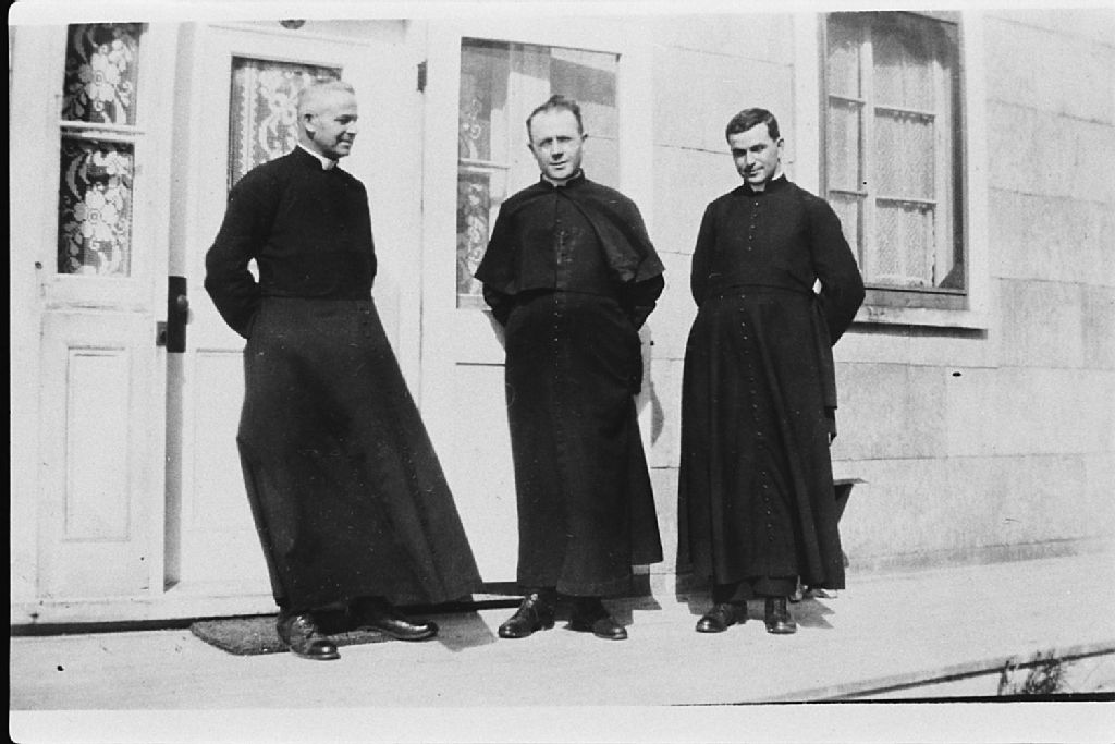 Père Lestrat à Port-Menier, Négatif reproduit en 1983(original créé vers 1930), Archives nationales à Sept-Îles, Fonds Société historique de Havre-Saint-Pierre inc, (09N,P19,S1,SS1,P829), Société historique de Havre Saint-Pierre.