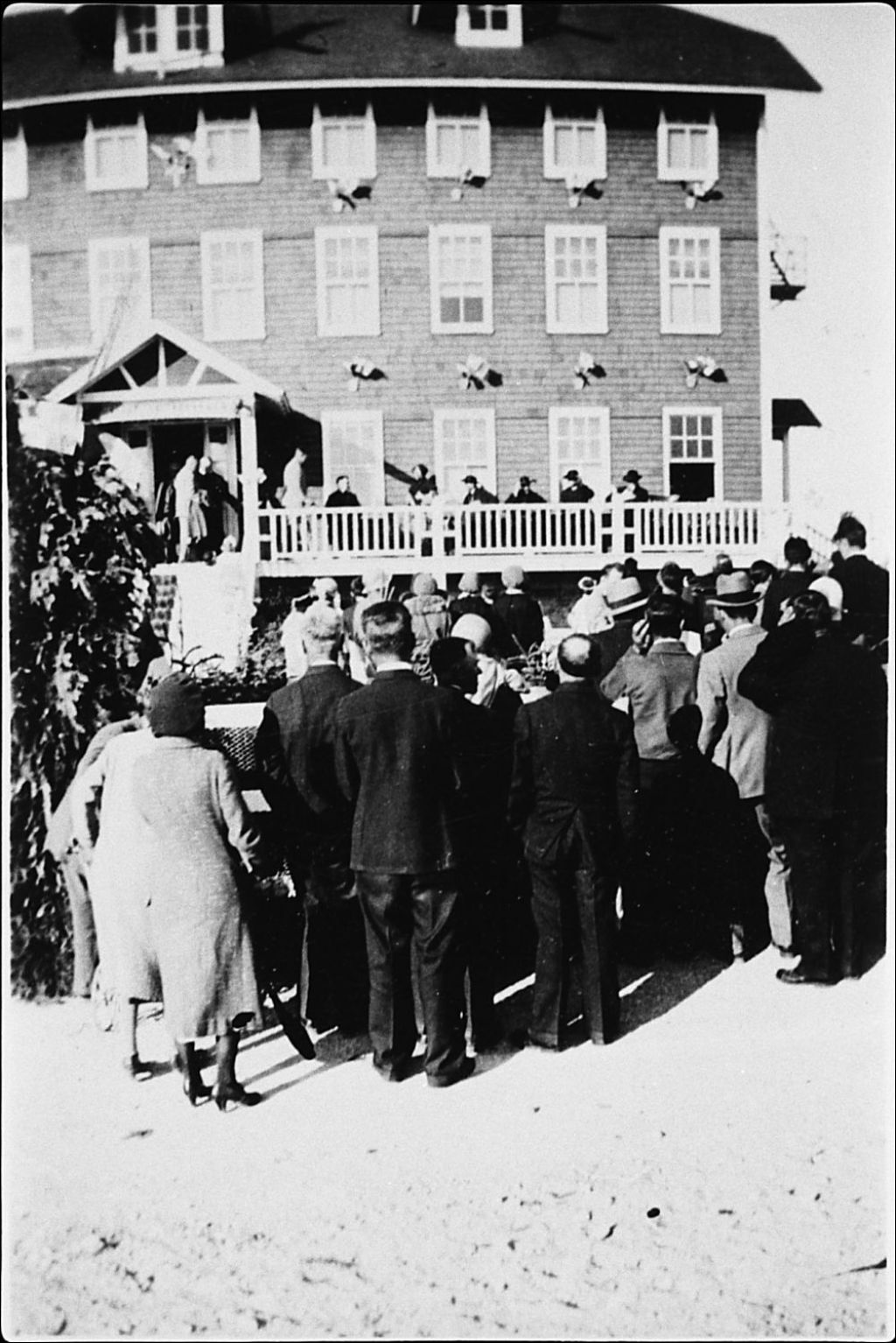 Cérémonie au couvent de Port Menier, Négatif reproduit en 1983(original créé en 1933), Archives nationales à Sept-Îles, Fonds Société historique de Havre-Saint-Pierre inc, (09N,P19,S1,SS1,P835), Société historique de Havre Saint-Pierre.