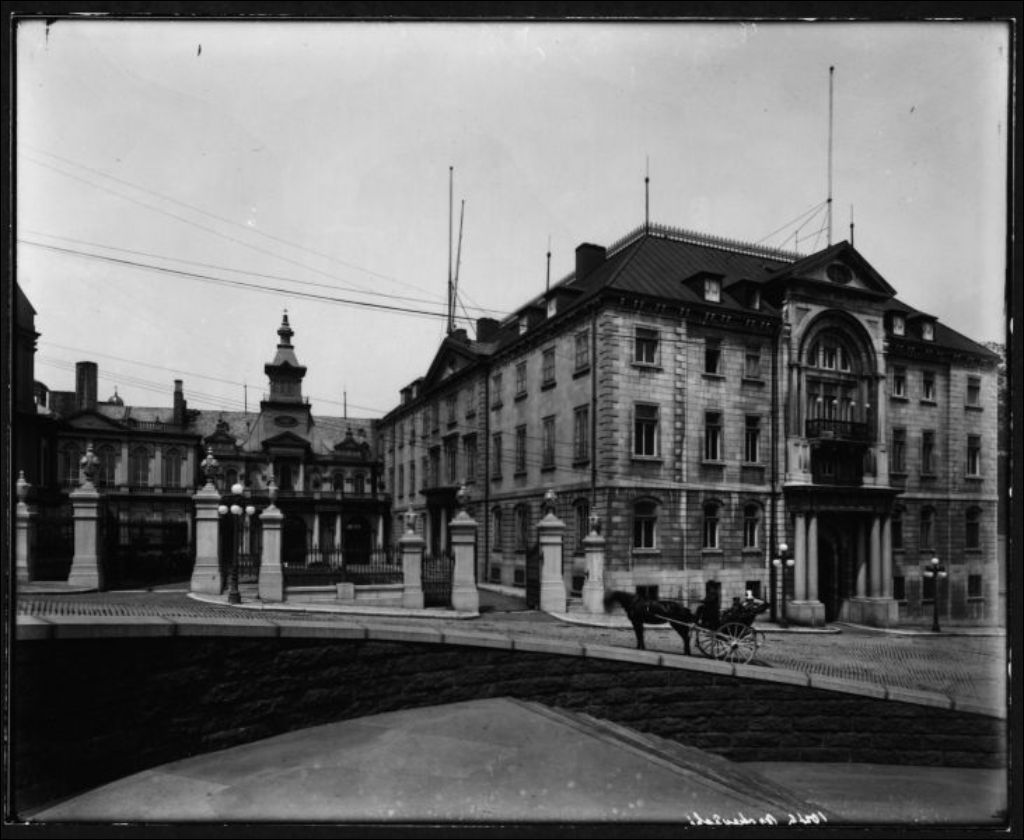 Vue sur le Palais épiscopal, [vers 1900], Archives nationales à Québec, Fonds J. E. Livernois Ltée, (03Q,P560,S1,P1046), Photographe non identifié.