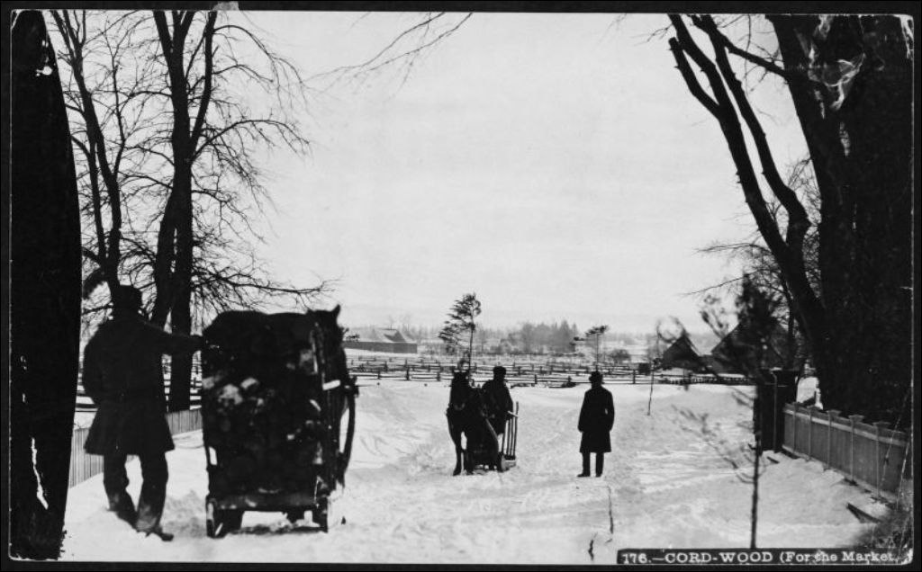 Transport de bois par chevaux sur la route du marché, [vers 1900], Archives nationales à Québec, Fonds J. E. Livernois Ltée, (03Q,P560,S1,P176), Photographe non identifié.