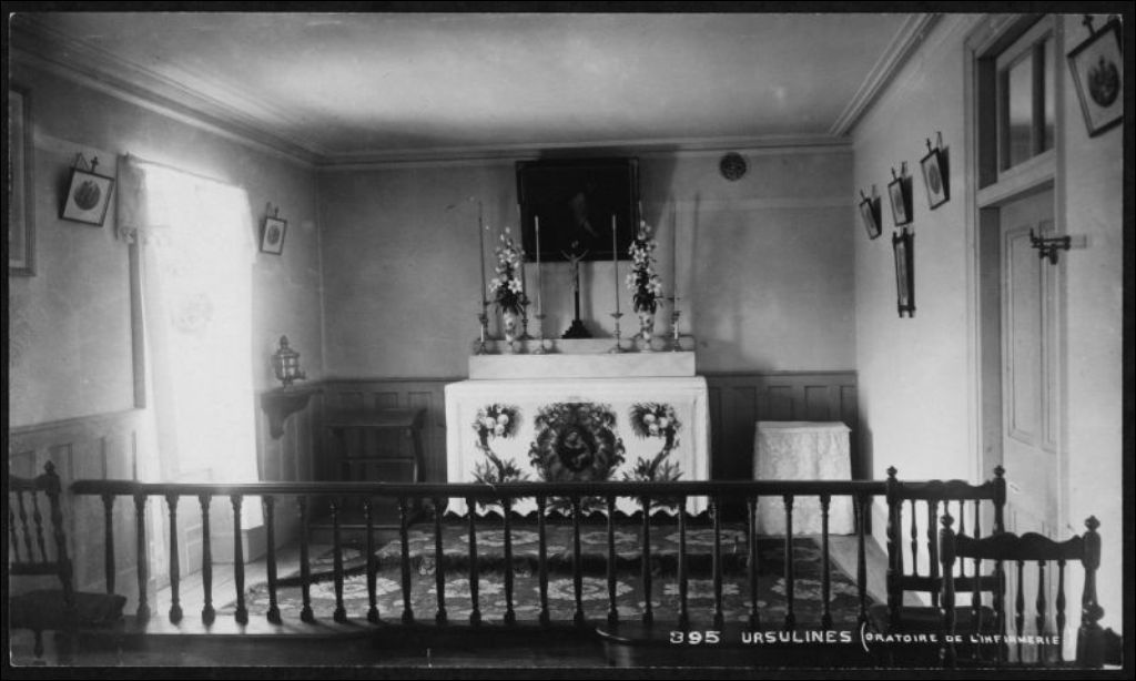 Oratoire de l'infirmerie, Ursulines de Québec, [vers 1900], Archives nationales à Québec, Fonds J. E. Livernois Ltée, (03Q,P560,S1,P395), Photographe non identifié.