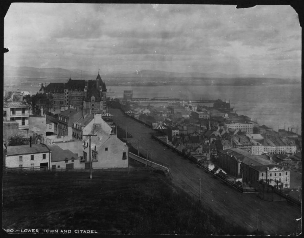 Vue en plongée de la Basse-ville de Québec et de la Citadelle, [vers 1900], Archives nationales à Québec, Fonds J. E. Livernois Ltée, (03Q,P560,S1,P460), Photographe non identifié.
