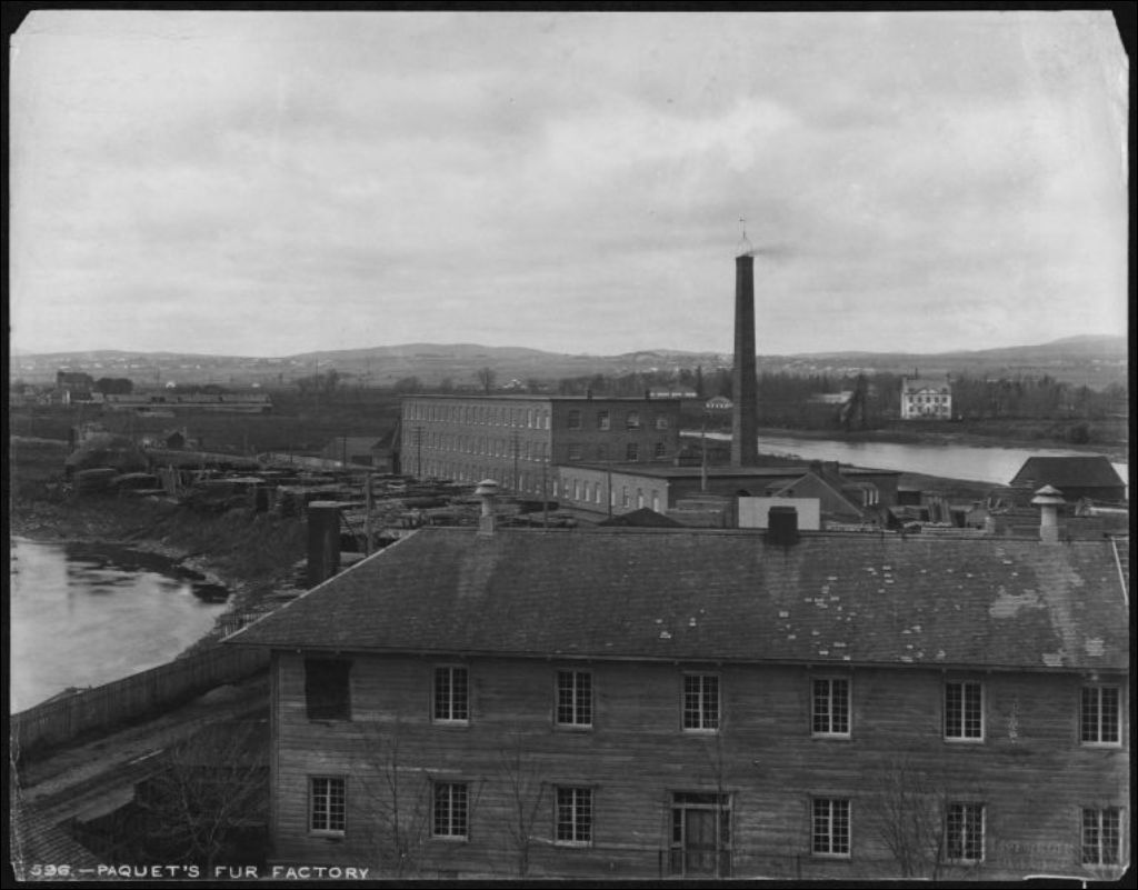 Manufacture de fourrures de la compagnie J. Arthur Paquet, rue de la Pointe-aux-Lièvres, [vers 1900], Archives nationales à Québec, Fonds J. E. Livernois Ltée, (03Q,P560,S1,P596), Photographe non identifié.