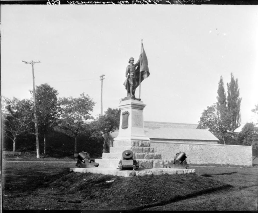 Monument à la mémoire des soldats Canadiens mort à la guerre des Boers en Afrique du Sud ., [Vers 1905], Archives nationales à Québec, Fonds J. E. Livernois Ltée, (03Q,P560,S1,P953), Photographe non identifié.