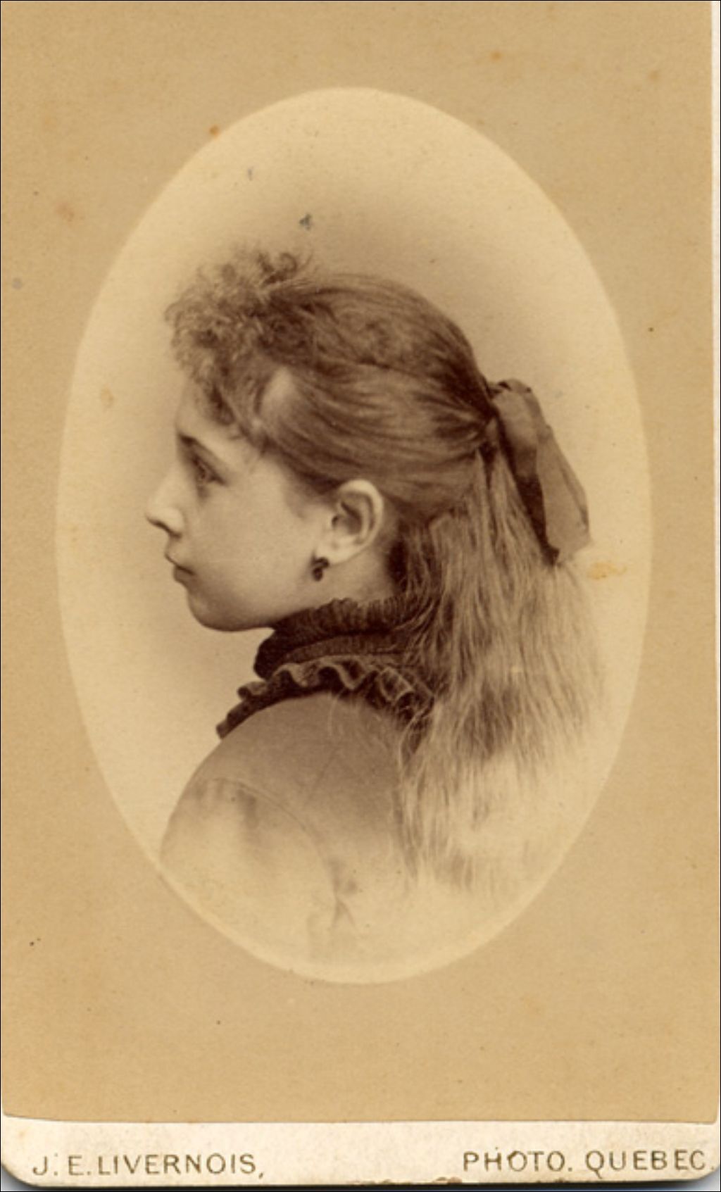 Stella Langevin, [Vers 1870], Archives nationales à Québec, Fonds J. E. Livernois Ltée, (03Q,P560,S2,D1,P626), J. E. Livernois Photo. Québec.