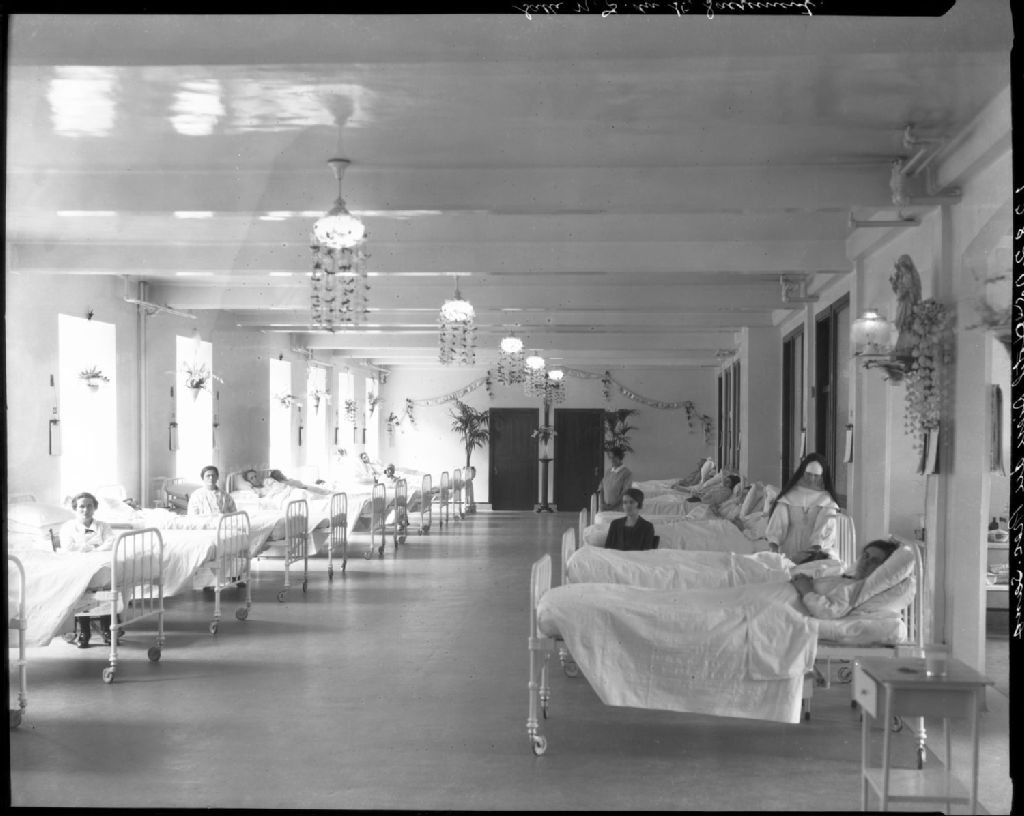 Chambre des malades de l'hôpital Hôtel-Dieu du Précieux Sang de Québec, [Vers 1925], Archives nationales à Québec, Fonds J. E. Livernois Ltée, (03Q,P560,S2,D2,P128205-4), Photographe non identifié.