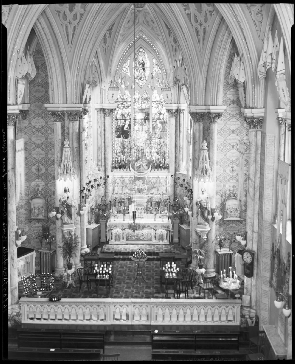 Intérieur de la chapelle Notre-Dame du Sacré-Coeur, 1937, Archives nationales à Québec, Fonds J. E. Livernois Ltée, (03Q,P560,S2,D2,P167057-1), Photographe non identifié.