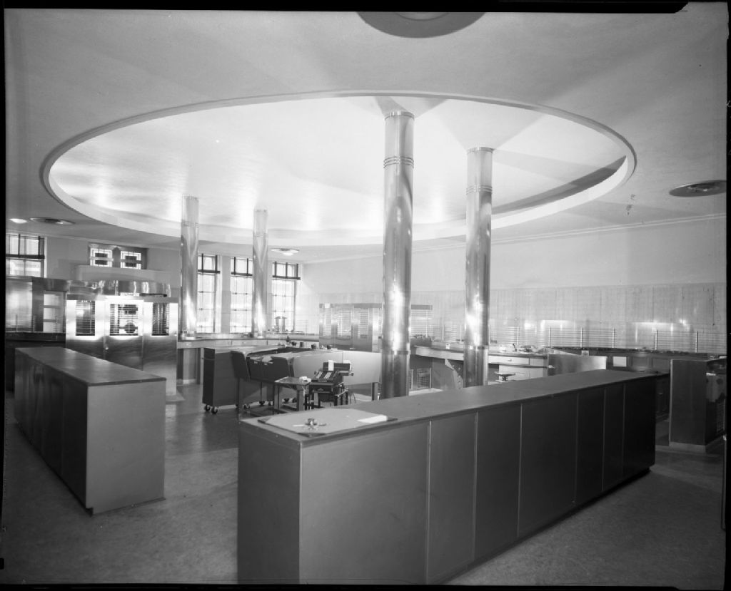 Intérieur de La Caisse d'Économie de Notre-Dame de Québec, 1940, Archives nationales à Québec, Fonds J. E. Livernois Ltée, (03Q,P560,S2,D2,P181419-3), Photographe non identifié.