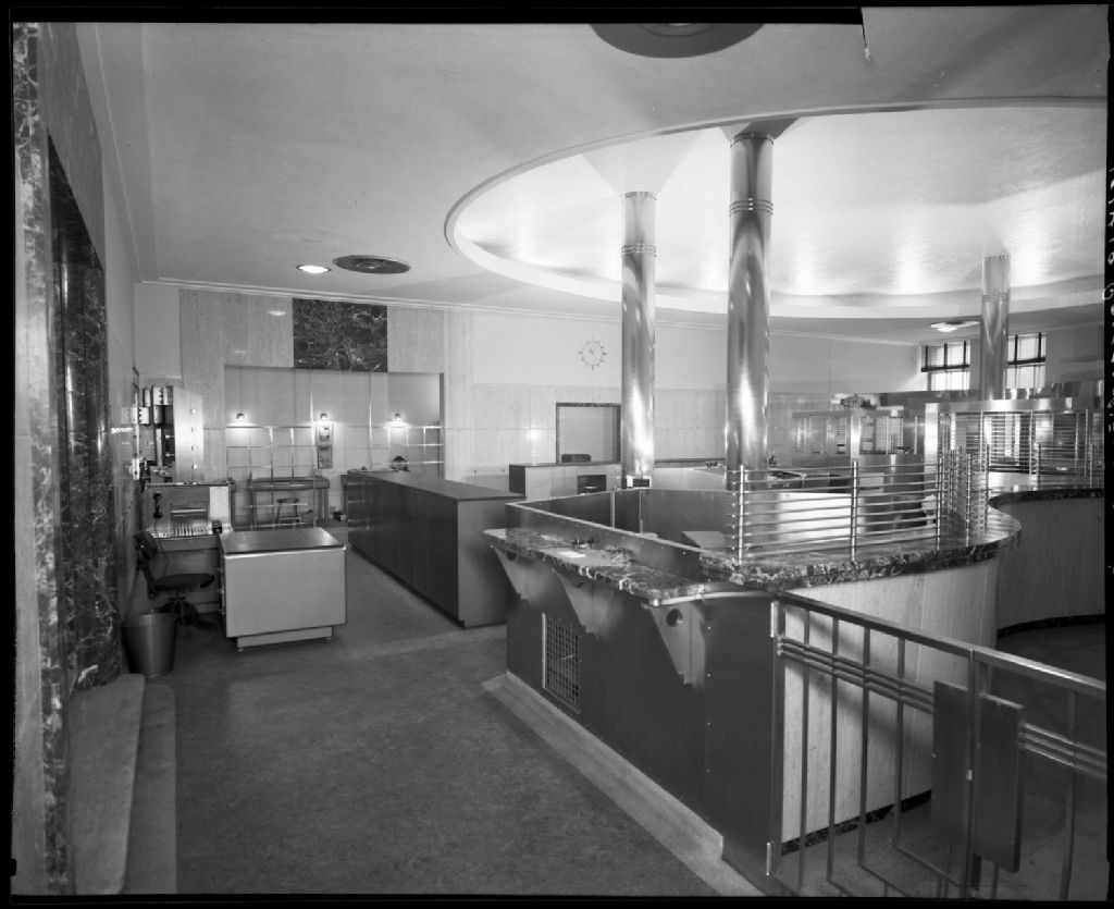 Intérieur de La Caisse d'Économie de Notre-Dame de Québec, 1940, Archives nationales à Québec, Fonds J. E. Livernois Ltée, (03Q,P560,S2,D2,P181419-5), Photographe non identifié.