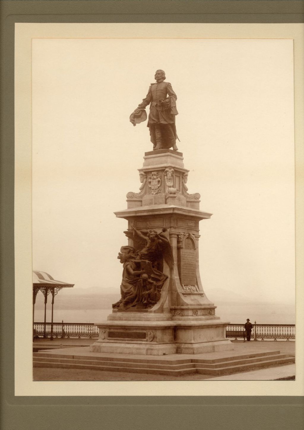Monument de Samuel de Champlain, [vers 1900], Archives nationales à Québec, Fonds J. E. Livernois Ltée, (03Q,P560,S2,D2,P300381), Photographe non identifié.