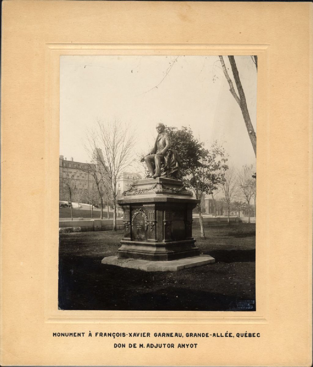 Monument François-Xavier Garneau, [vers 1900], Archives nationales à Québec, Fonds J. E. Livernois Ltée, (03Q,P560,S2,D2,P300383), Photographe non identifié.