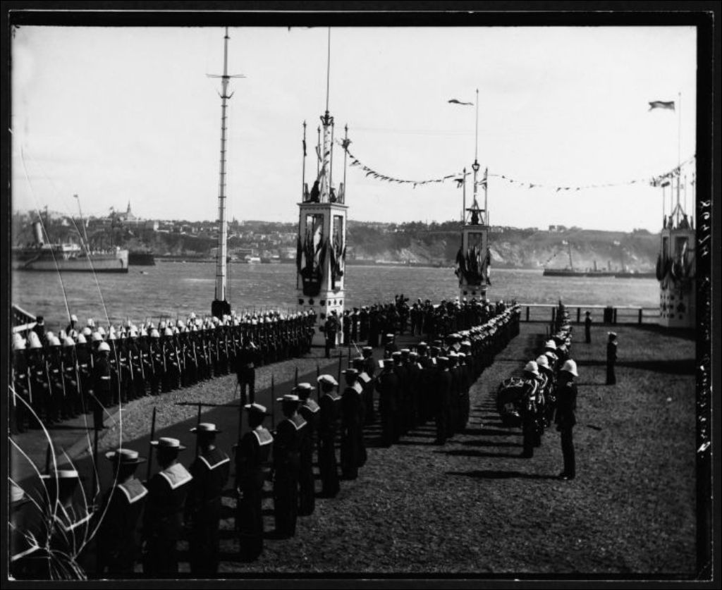 L'arrivée du Prince de Galles à l'occasion du Tricentenaire, 1908, Archives nationales à Québec, Fonds J. E. Livernois Ltée, (03Q,P560,S2,D2,P86474-2), Photographe non identifié.