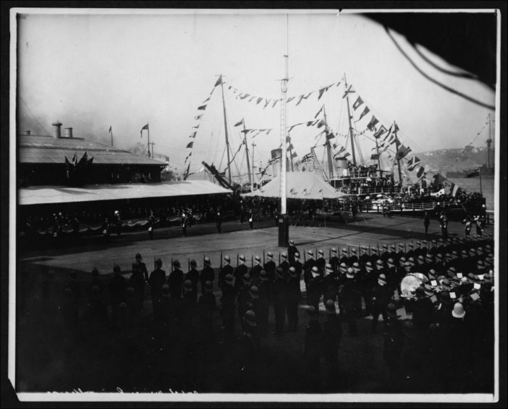 Arrivée du Prince de Galles à l'occasion des fêtes du Tricentenaire, 1908, Archives nationales à Québec, Fonds J. E. Livernois Ltée, (03Q,P560,S2,D2,P92573), Photographe non identifié.