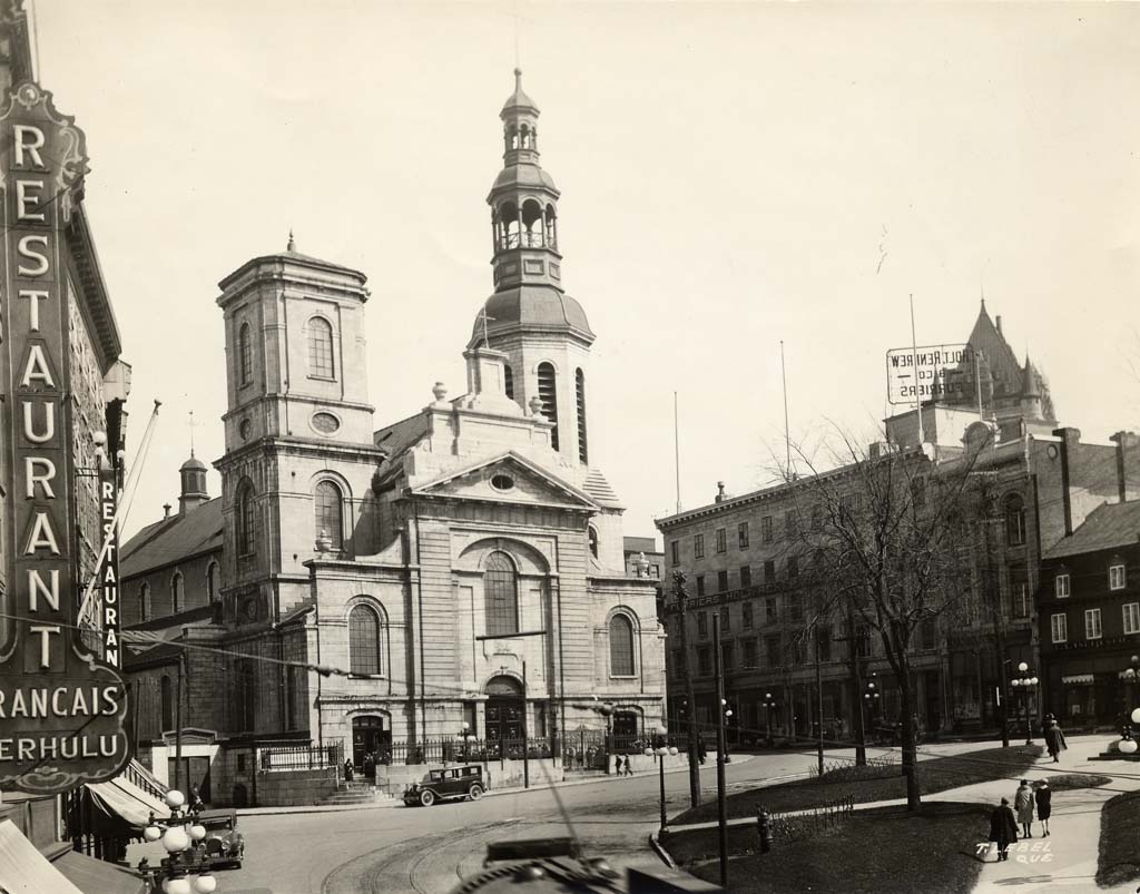 Quartier Vieux-Québec - Côte de la Fabrique - Place de l'Hôtel-de-Ville - Basilique-cathédrale Notre-Dame-de-Québec - Vue éloignée du profil gauche