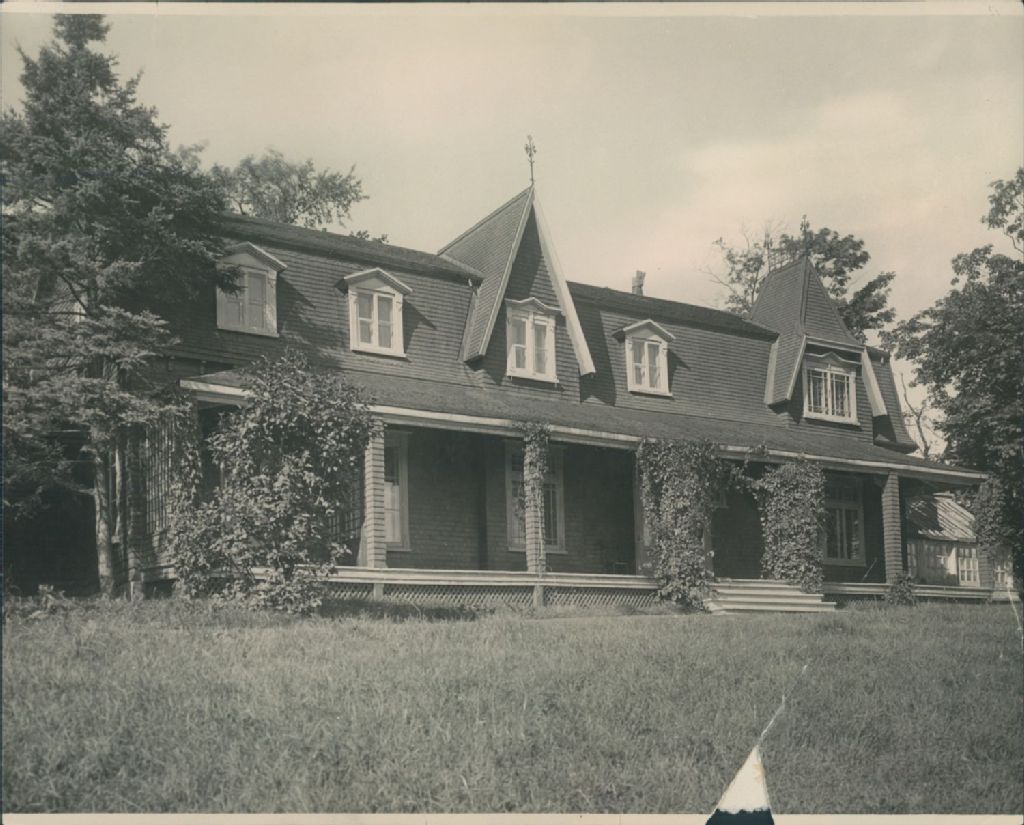 Vue éloignée de la façade de "Meadowbank", cette propriété qui en 1918 par donation testamentaire de son propriétaire Gustavus George Stuart au Gouvernement Canadien, deviendra le premier pavillon antituberculeux à voir le jour dans la région