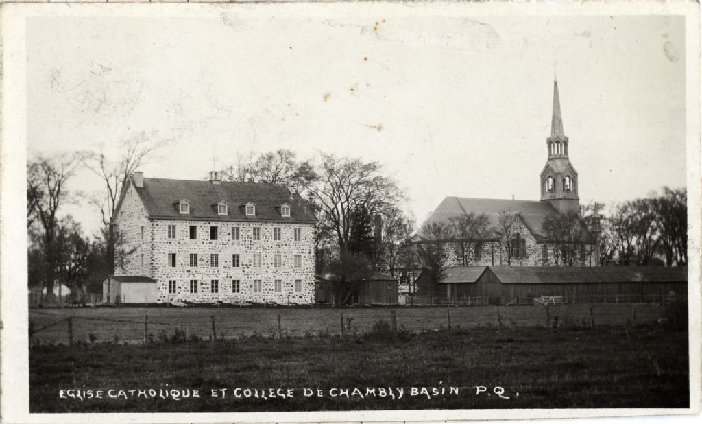 Chambly - Église Saint-Joseph et le collège des Frères, Vers 1910], Archives nationales à Québec, Collection initiale, (03Q,P600,S6,D5,P158), Photographe non identifié.