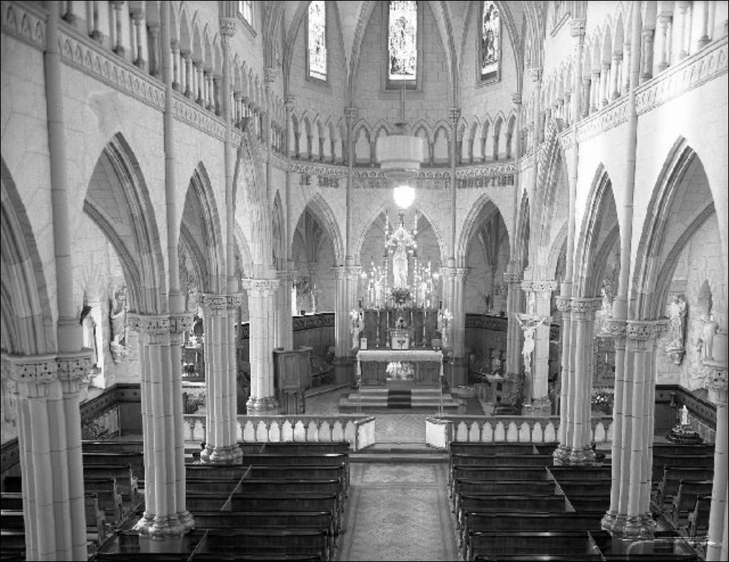 Intérieur d'une église, 1947, Archives nationales à Gatineau, Fonds Champlain Marcil, (07H,P174,S4,P132), Marcil, Champlain.