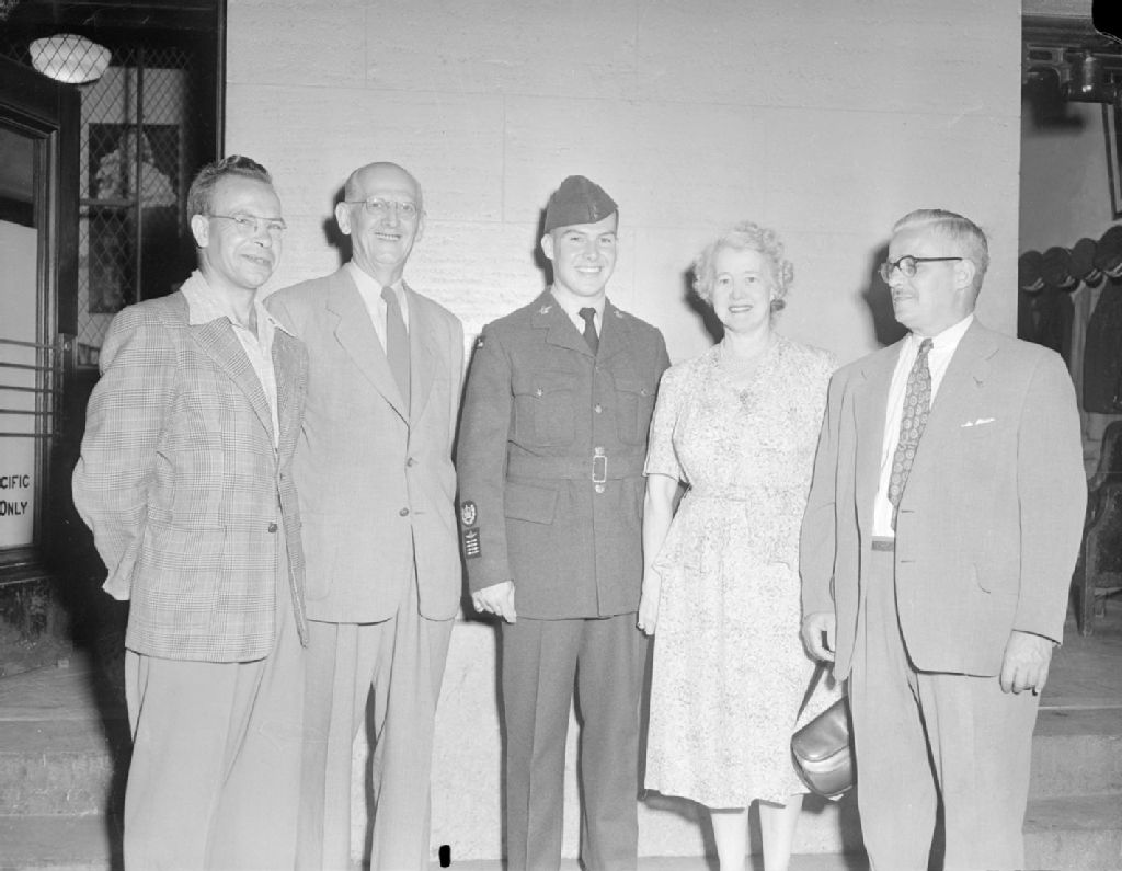 Départ du cadet de l'air Delher, 22 juillet 1952, Archives nationales à Gatineau, Fonds Champlain Marcil, (07H,P174,S6,D3890), Marcil, Champlain.